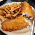Boneless pieces of fish coated with chickpea flour and mildly...